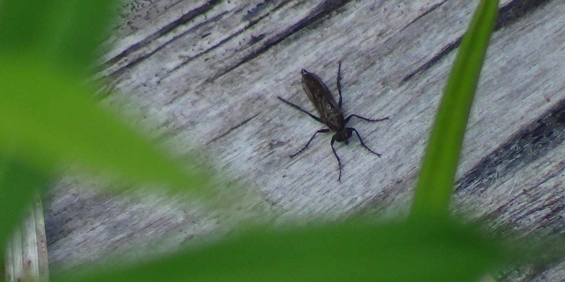 Robber flies (Order: Diptera, Family: Asilidae) are a widely distributed family of predacious flies. They are considered to be top-level predators crucial to suppressing various insect populations, however the ecology and behavior of the species Lasiopogon currani has received minimal attention. We conducted a study of L. currani underneath a disturbed powerlines area in Pierrepont, St. Lawrence County to determine insect diversity, potential prey, and behavioral patterns. We found that the insect diversity of the powerlines study site included representatives of eight orders. We also found that 88.5% and 88.1% of specimens collected from the malaise trap and pan traps could be considered as potential prey. Furthermore, we observed a positive correlation between L. currani abundance and the abundance of their potential prey during the peak of the adult season. Lastly, we observed that L. currani exhibit multiple behavioral traits that can be categorized as; predation, test flights, positional rotation, mating, preening, and aggression. Throughout the observation period, we observed L. currani consuming mosquitoes and black flies. Because black flies are an annoyance for humans and mosquitoes are vectors of diseases, it is important to know that L. currani can suppress these pests as it can be explored in later research.