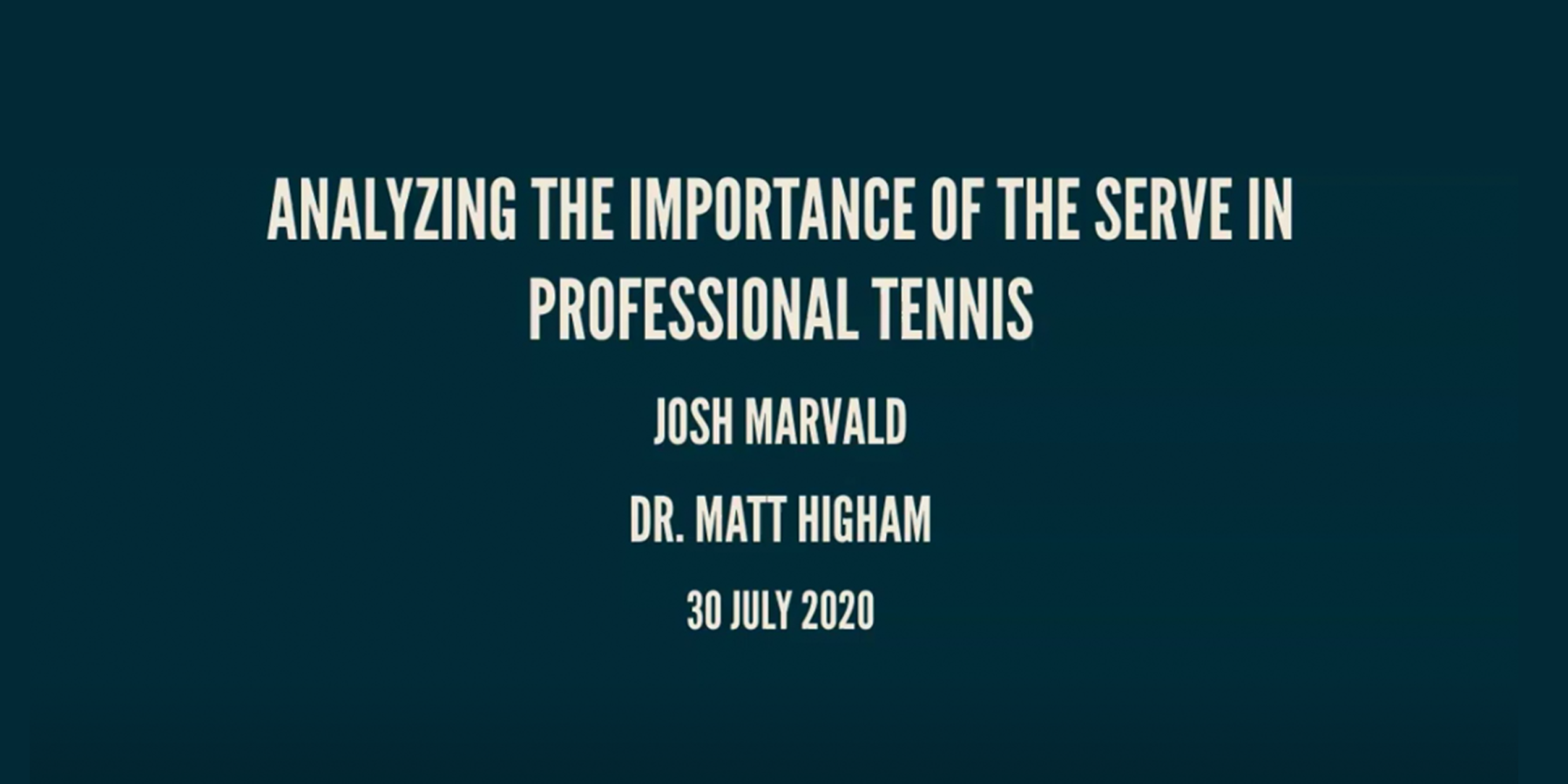 This project is an attempt to provide an analysis of the serve in professional tennis and its association with win probability. We completed extensive data exploration and wrangling to both find important trends and to shape the data into usable forms to build models. The final model is a Bradley-Terry model that focuses on how first serve percentage (percent of times the first serve is made) is associated with win probability for different players. After completing the model building and testing, we built a Shiny app that allows users to plot the fitted Bradley-Terry model lines for players of interest and specific opponents. The app allows users to examine how the association between the probability of winning a match and first serve percentage changes for different players and first serve percentages.